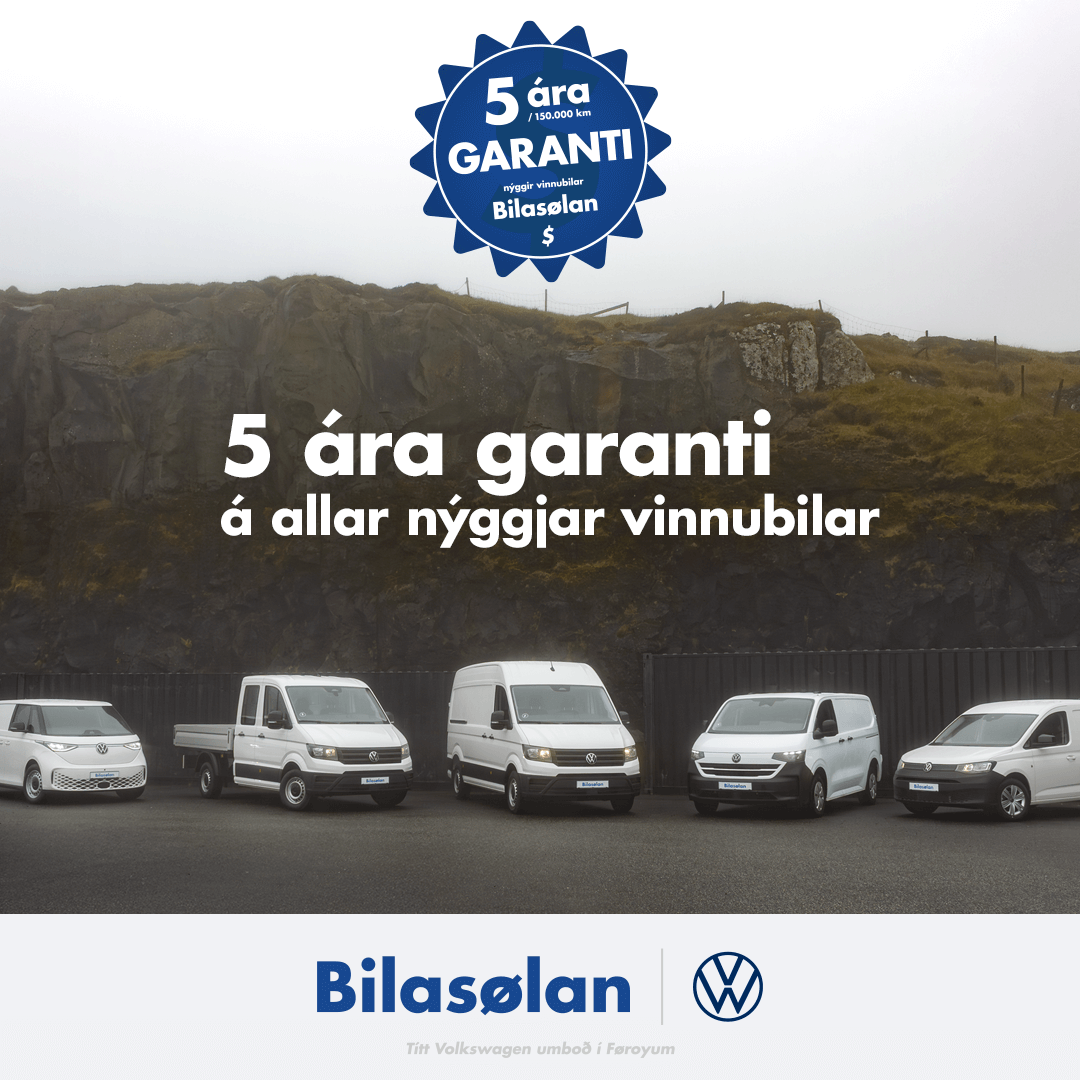 Keypir tú ein nýggjan Volkswagen Vinnubil frá Bilasøluni fært tú nú eitt garanti uppá *5 ár ella 150.000 km, alt eftir hvat kemur fyrst, við í keypinum.