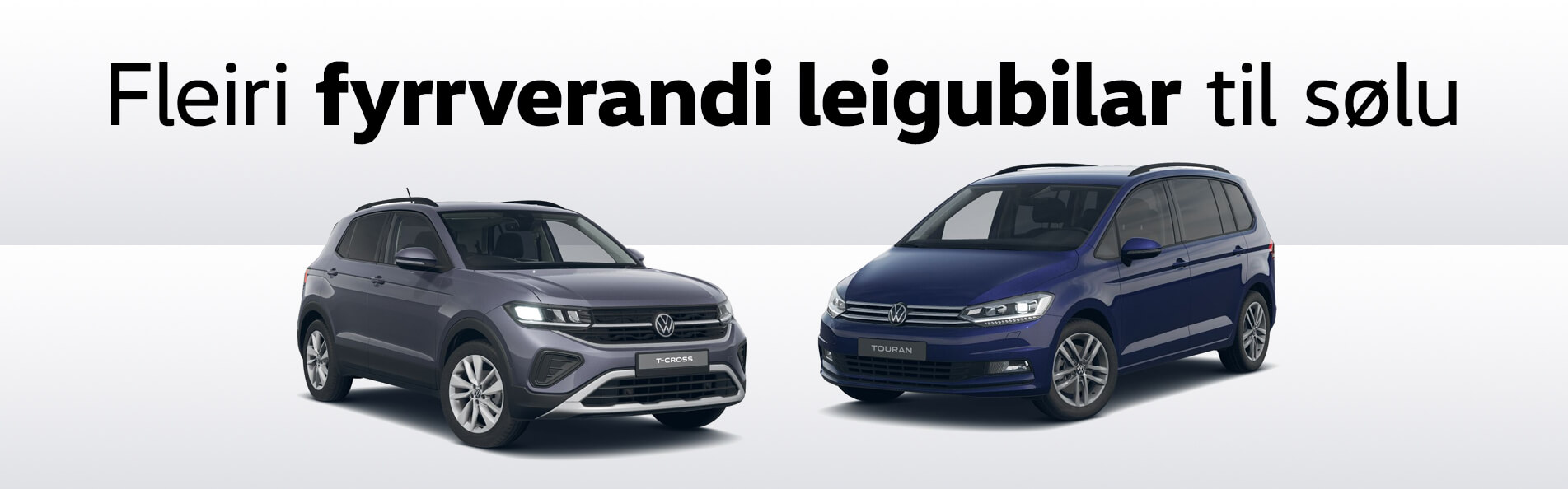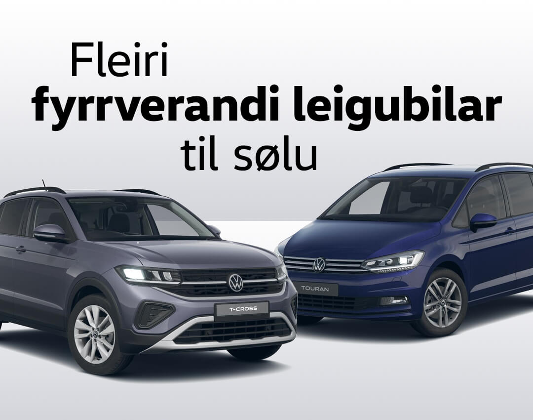 Vit hava í løtuni fleiri fyrrverandi leigubilar á goymslu. Eitt nú hava vit 7-seturs familjubilin VW Touran, VW T-Roc, VW T-Cross og Škoda Fabia, umframt aðrar.